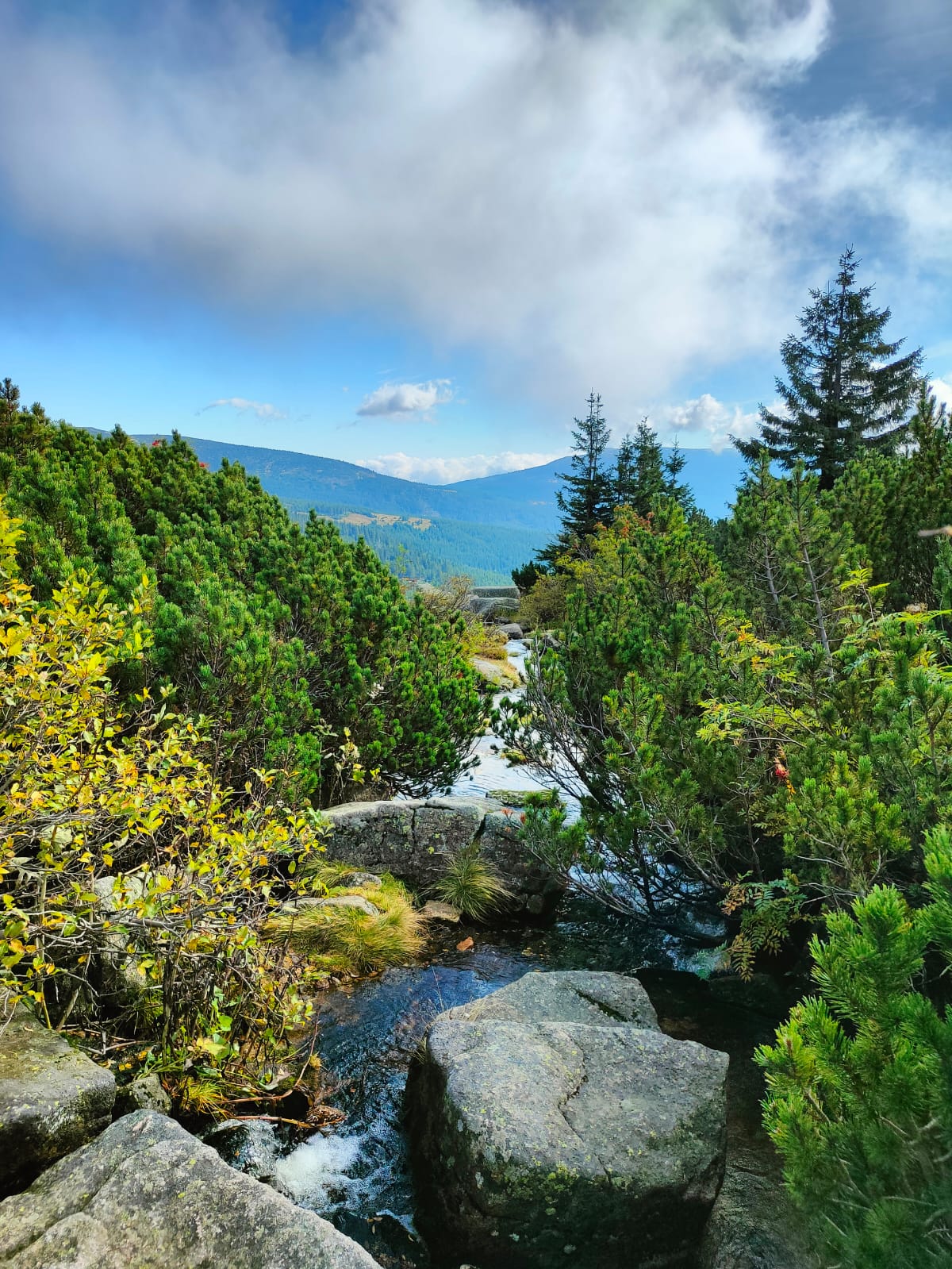 Mimo plán našich pravidelných měsíčních vycházek jsme v pátek 19. září 2025 uskutečnili výlet do Krkonoš. Předpověď počasí tentokrát vyšla, bylo krásně, zúčastnilo se nás 15.